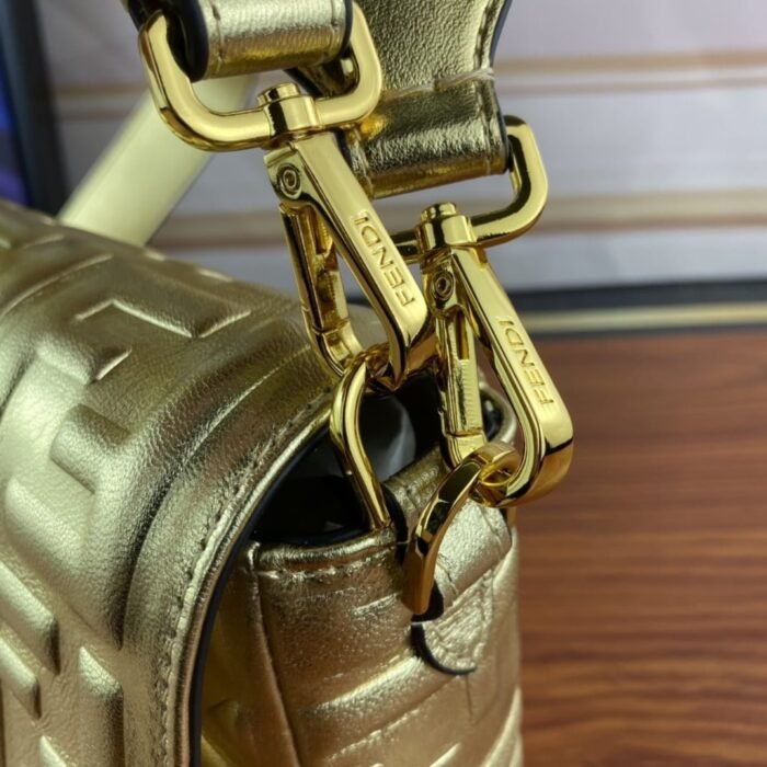 Home BAGS Fendi FENDI BAGUETTE Embossed design Gold Handbag F0191 Size: 26x5x15cm