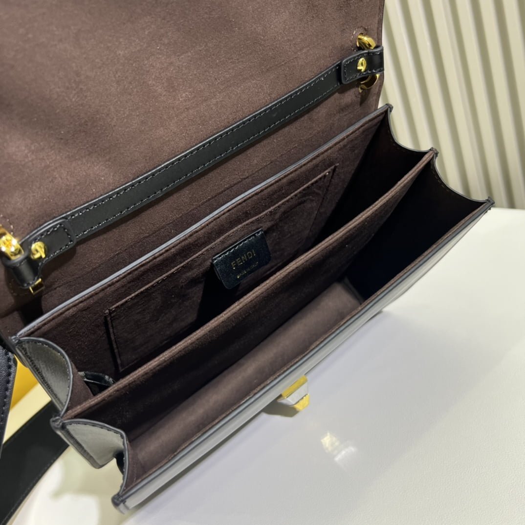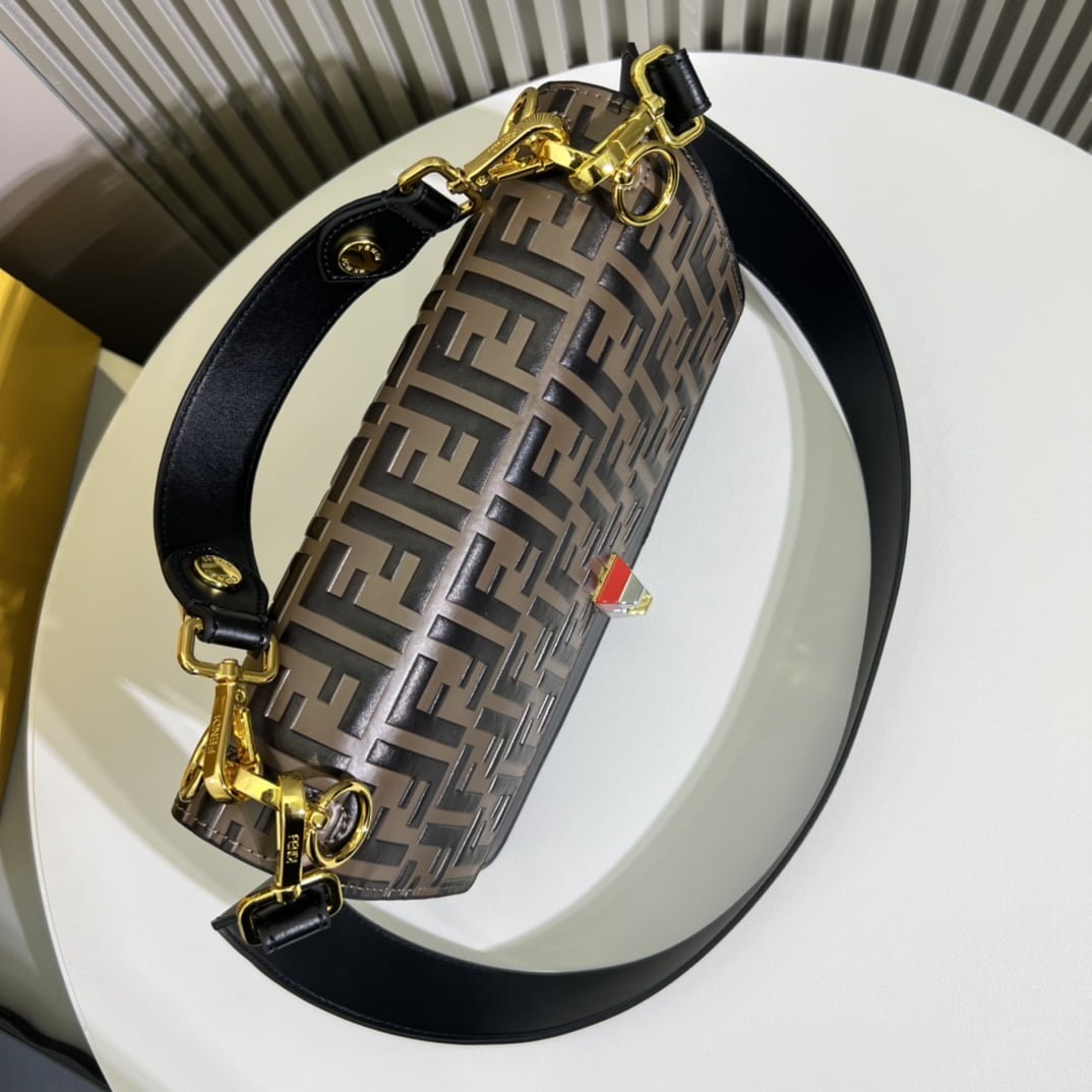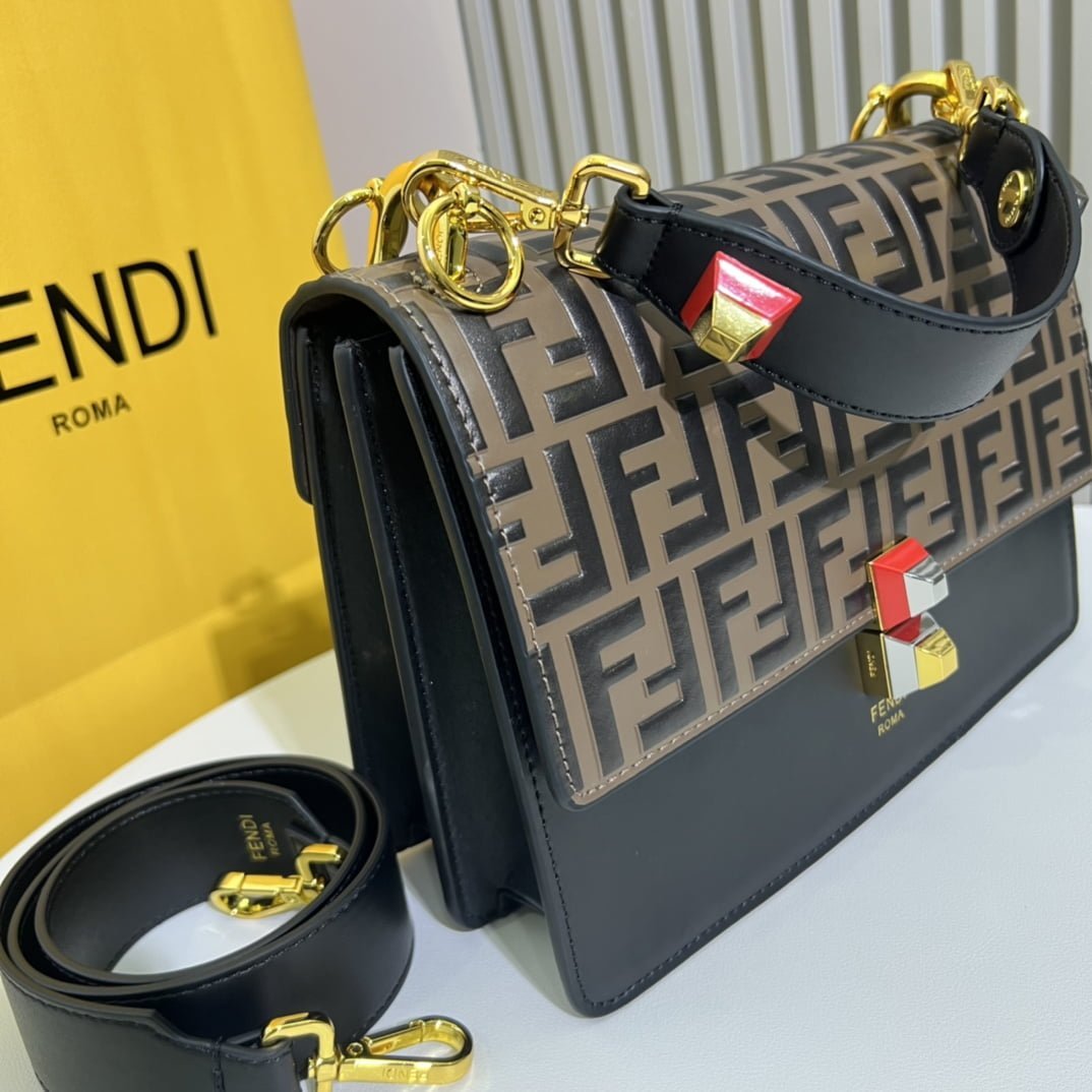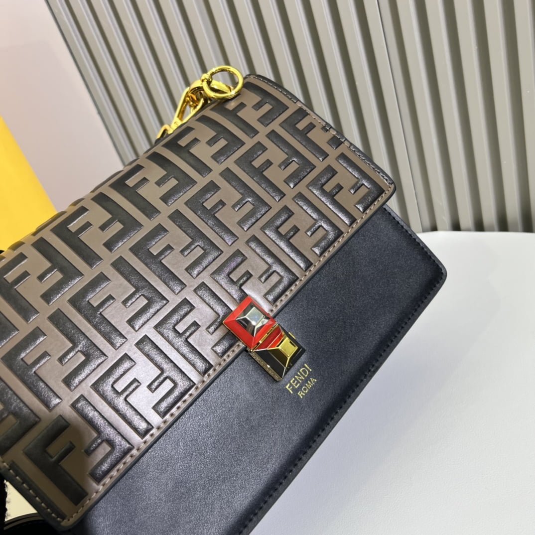 The latest clamshell handbag 👉 decorated with the latest fendi logo 💗. The magnetic buckle opens and closes. Inside pocket. It comes with a detachable shoulder strap and can be held diagonally or in the hand. Imported calfskin 🐂. Fully decorated with hand-painted ff embossed logo. Palladium finish mixed with gold finish Metal accessory 🎀 Model No. 9235 # Size 25.19.11.