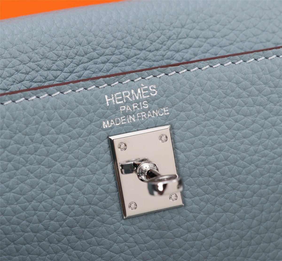 Hermès Kelly 𝐓𝐨𝐠𝐨 Calf Sliver hardware Linen blue size: 𝟮𝟱𝐶𝑚/ 𝟮𝟴𝐶𝑚