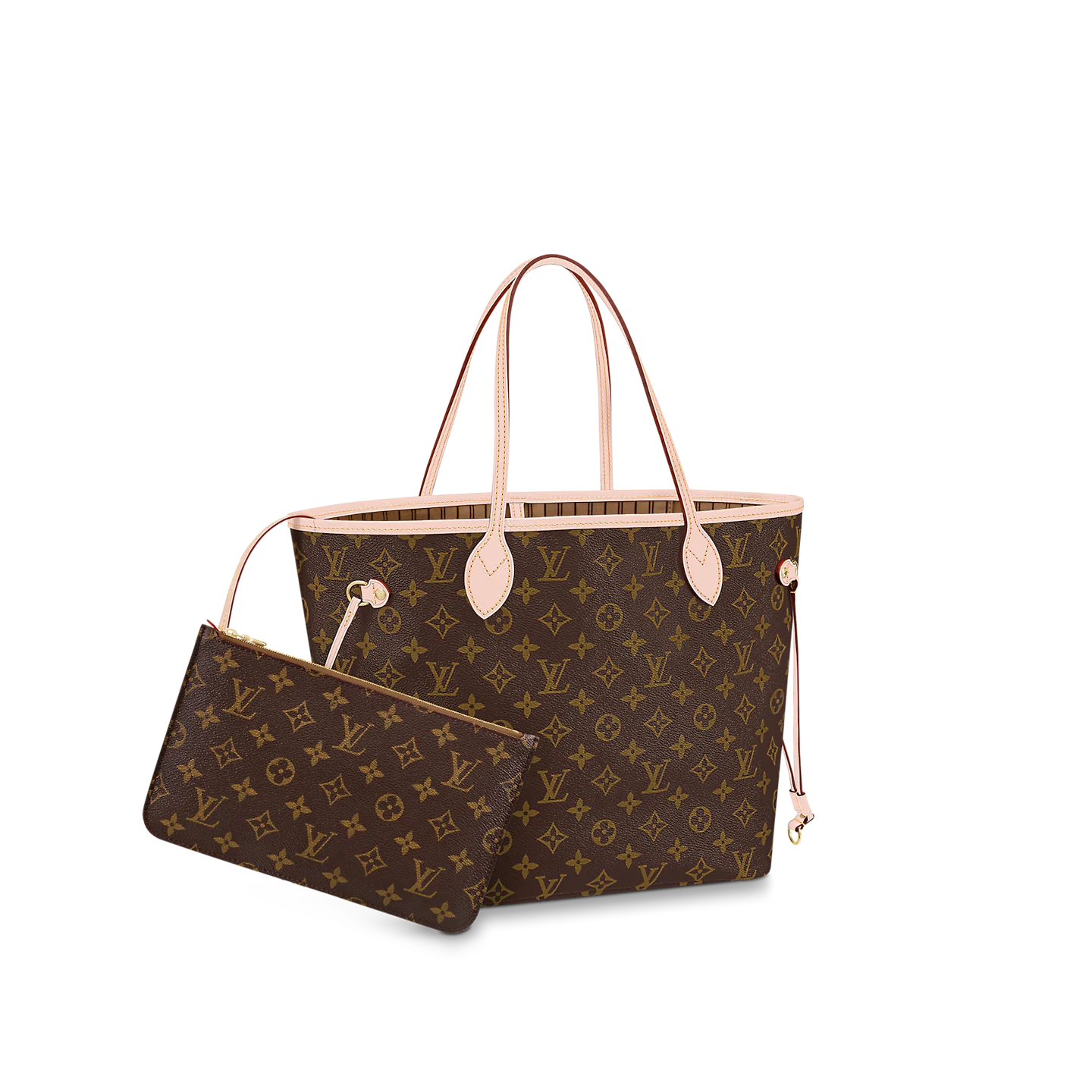 The Neverfull MM tote unites timeless design with heritage details. Made from supple Monogram canvas with natural cowhide trim. it is roomy yet not bulky. with side laces that cinch for a sleek allure or loosen for a casual look. Slim. comfortable handles slip easily over the shoulder or arm. Lined in colorful textile. it features a removable pouch which can be used as a clutch or an extra pocket.